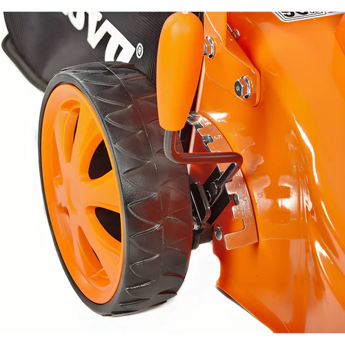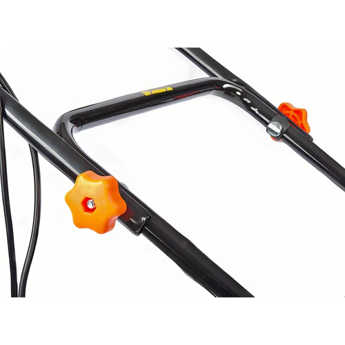 CORTACESPED PLUS ANOVA CE246. Motor eléctrico 1800W con regulación de altura central, desde 1 sola palanca regula las 4 ruedas a la vez en 7 diferentes posiciones (desde 30mm a 75mm). Recomendado para superficies pequeñas de entre 150m² y 300m². Recogedor de 60 litros e indicador de llenado recogedor.
