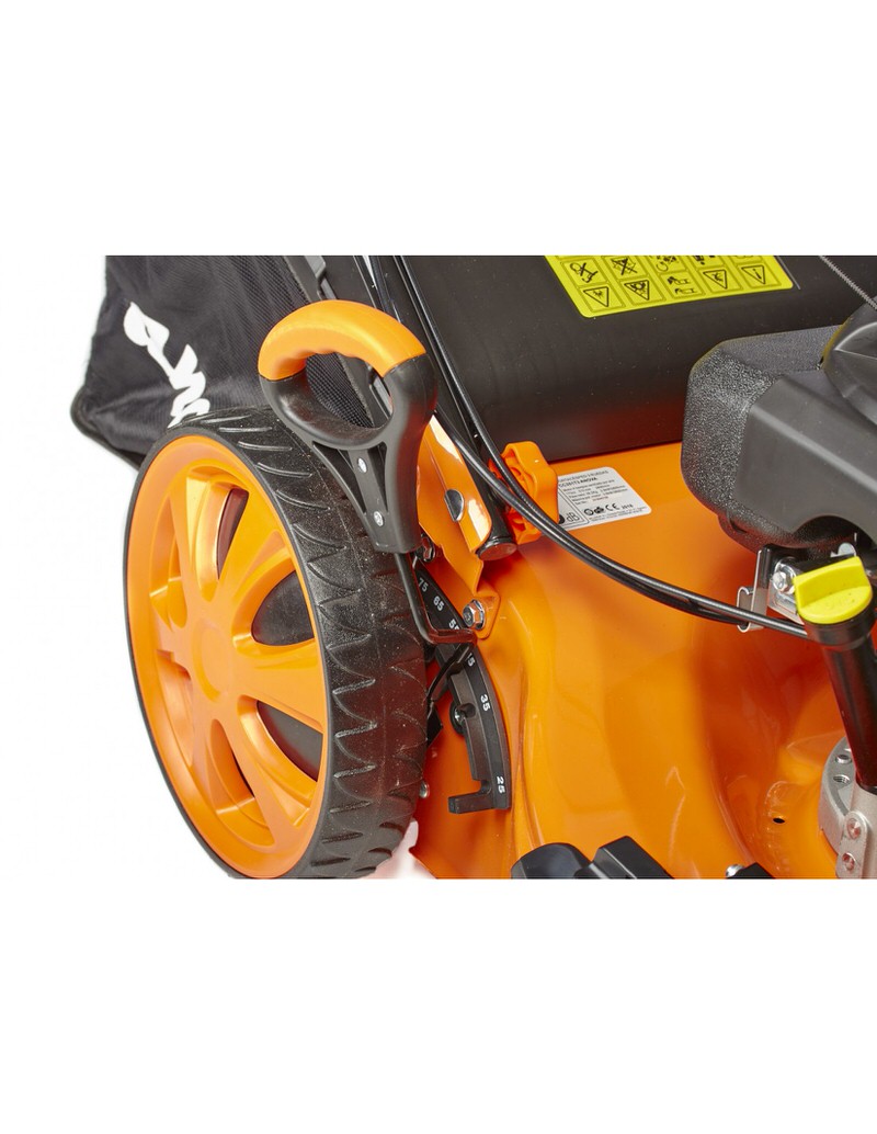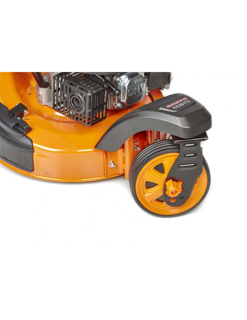 CORTACESPED PREMIUM ANOVA CC351T3. Este cortacésped a gasolina es de giro cero y posee una estructura de 3 ruedas, por lo que se convierte en un modelo único y eficaz. Destinado especialmente para jardines con árboles o frutales, pues puede bordearlos de manera mucho más precisa y rápida. Con chasis de acero y función cuatro en uno (corte, reciclado, recogida y salida lateral) que hará de los cuidados de jardín una actividad cómoda, fácil y rápida.