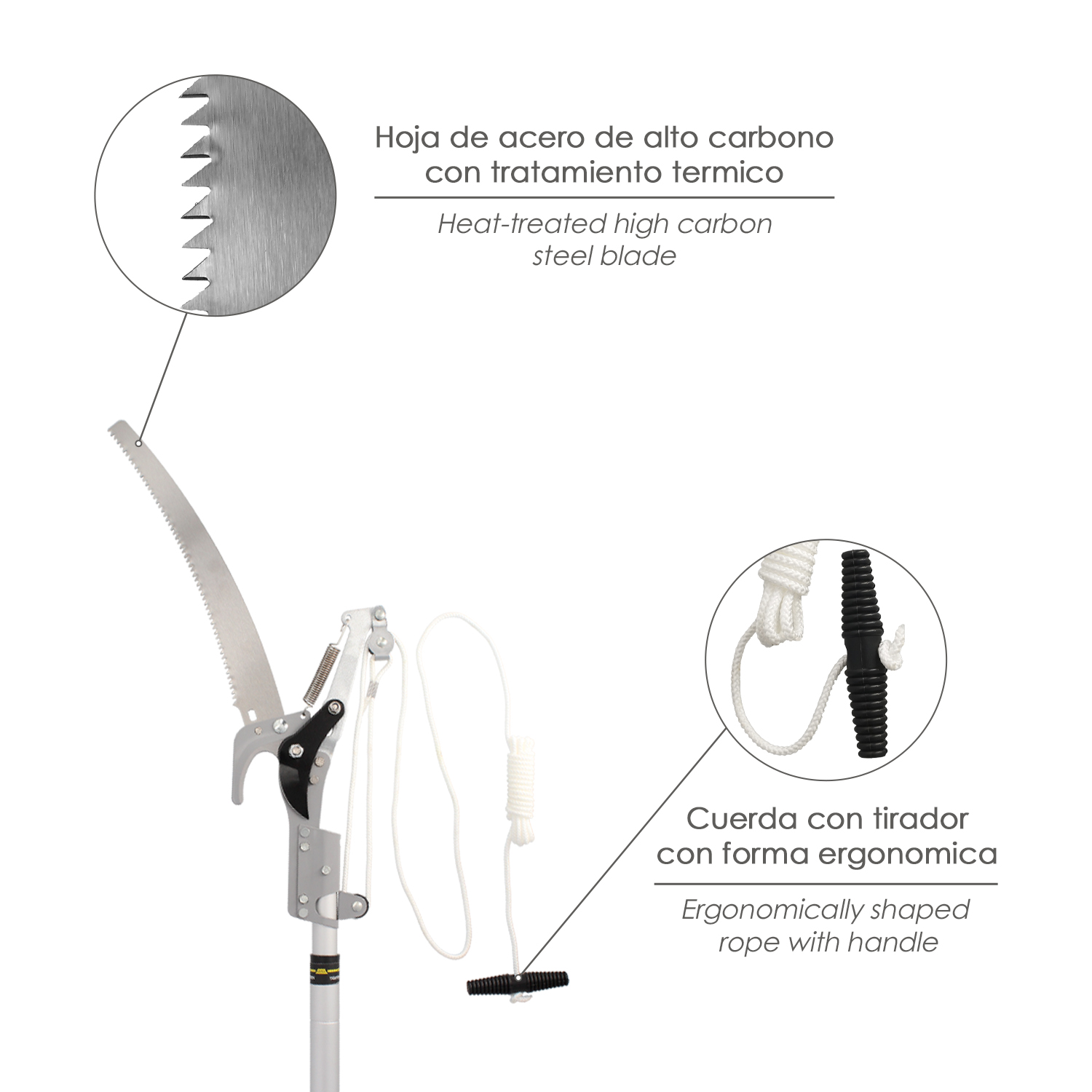 – Cuerda con tirador con forma ergonomica, para transferir toda la tracción al corta ramas.