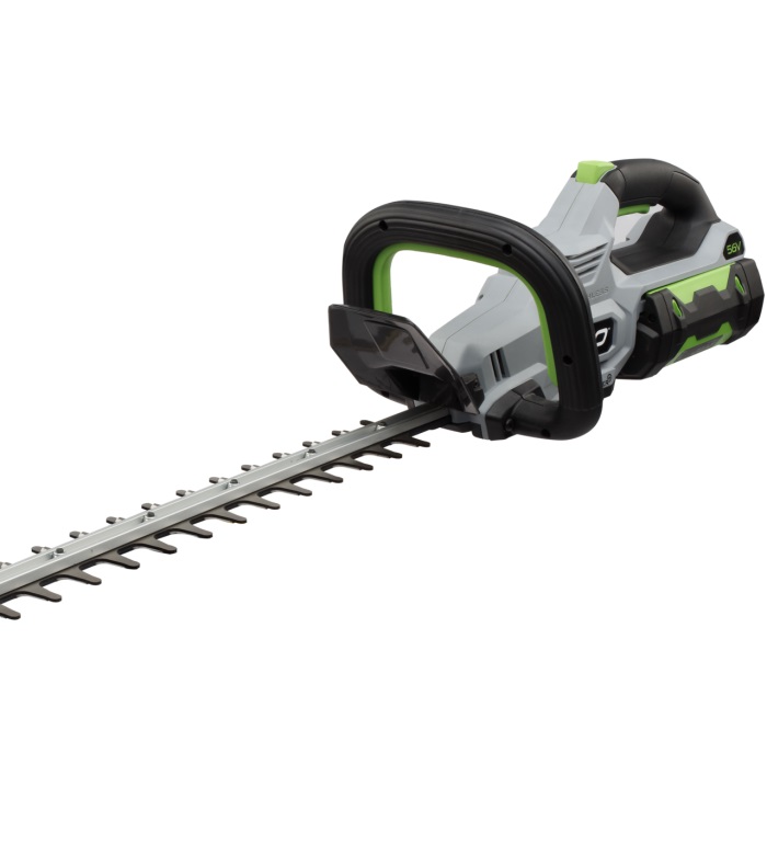 CORTASETOS A BATERIA DE 61CM HT2410E – EGO. Con sus 61cm de longitud de corte, el HT2410E es ideal para recortar setos anchos, de altura media y con tallos gruesos. Los 26mm de espacio entre hojas y los 20mm de profundidad de cada diente le permiten devorar las ramas que encuentre a su paso. Esta herramienta tiene un control de una sola velocidad y hojas cortadas con láser y rectificadas con diamante para cortar tallos de manera más fácil. Motor sin escobillas y caja de cambios que consiguen aportar la máxima potencia en tus trabajos. Y todo ello sin ruidos, humos o molestas vibraciones.