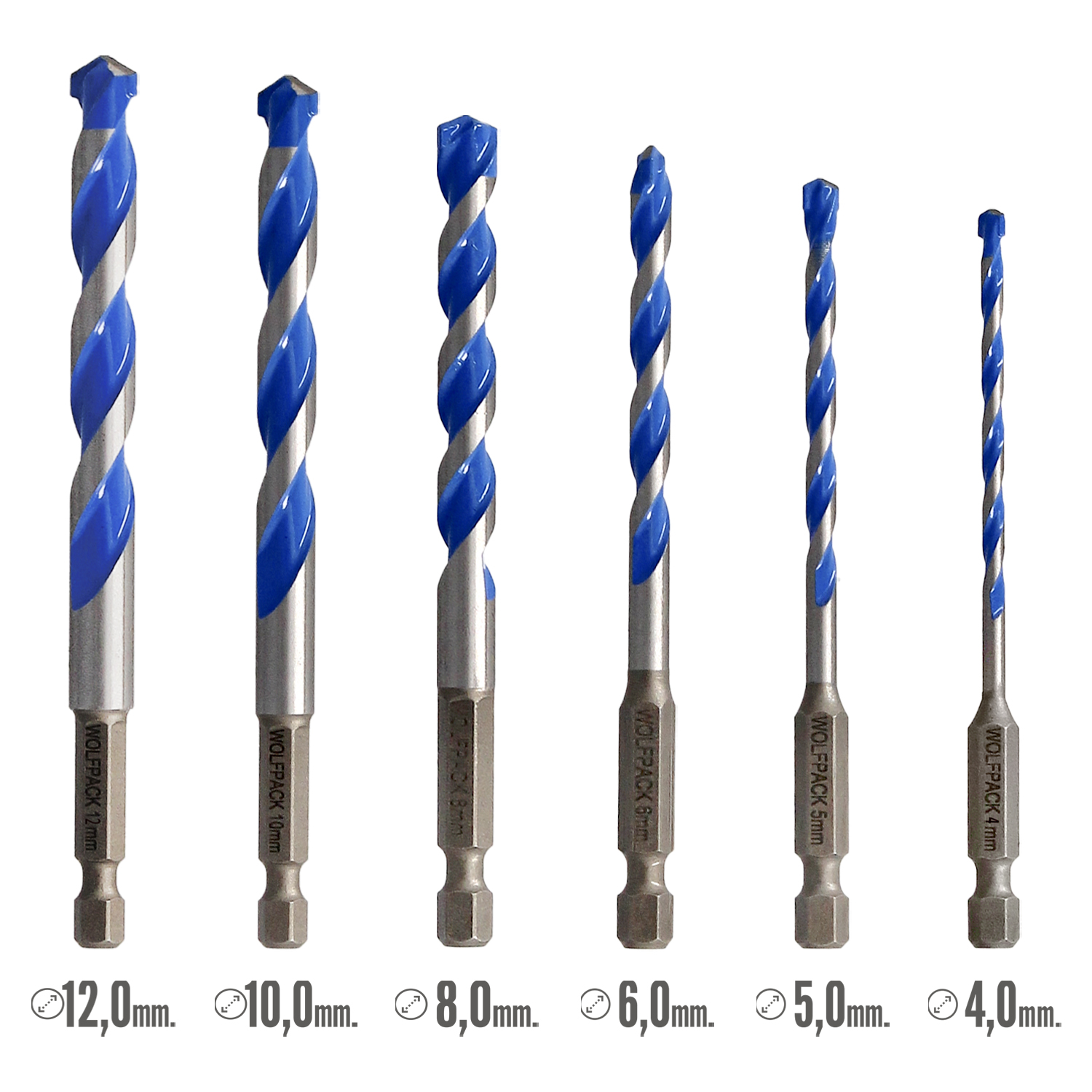 Estuche Brocas Wolfpack Universales Hexagonal Ø 4,0 a Ø 10 mm.