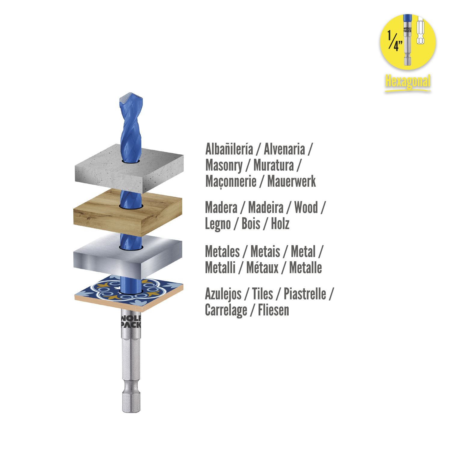 – Apta para la perforación de azulejos, cerámica, mármol, hormigón, metal, madera y plástico.