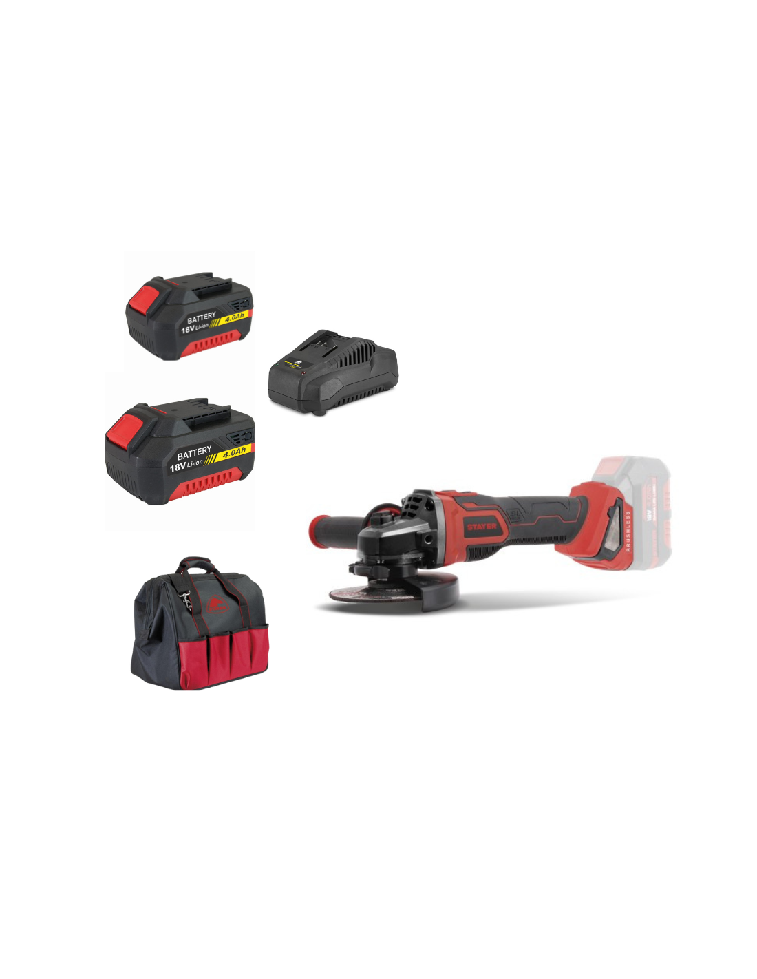 AMOLADORA ANGULAR A BATERIA 18V AGBX L20. Con sistema electrónico de velocidad constante. Sistema de frenado en menos de 2 segundos. Sistema de refrigeración con rejillas de protección y arranque progresivo. Viene equipado con 2 baterías de 5.0 AH, cargador y bolsa de transporte
